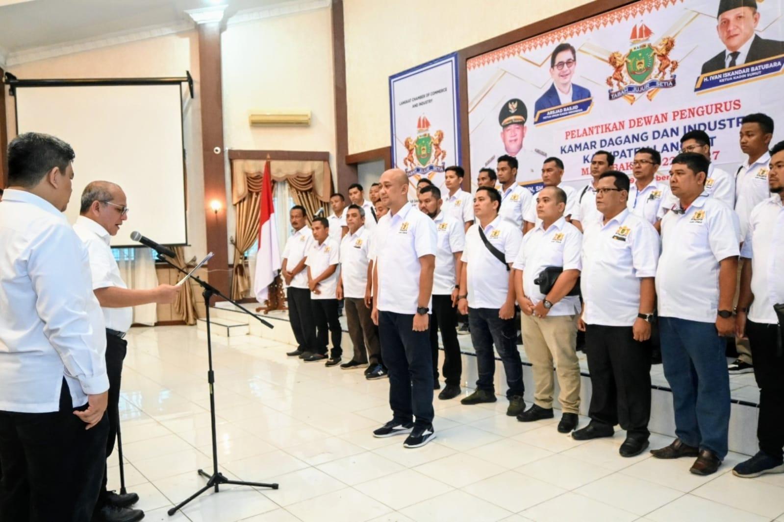 Plt. Bupati Langkat H. Syah Afandin diwakili oleh Plt Asisten Pemerintah dan Kesejahteraan Rakyat Pemerintah Kabupaten Langkat, Drs.H. Hermansyah, hadiri Pelantikan Dewan Pengurus Kamar Dagang dan Industri (KADIN) Kabupaten Langkat Masa Bhakti 2012-2027.